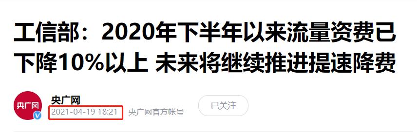 根据最新数据,工信部在2年前发布的数据显示,过去不到一年的时间里,流量资费下降了10%。